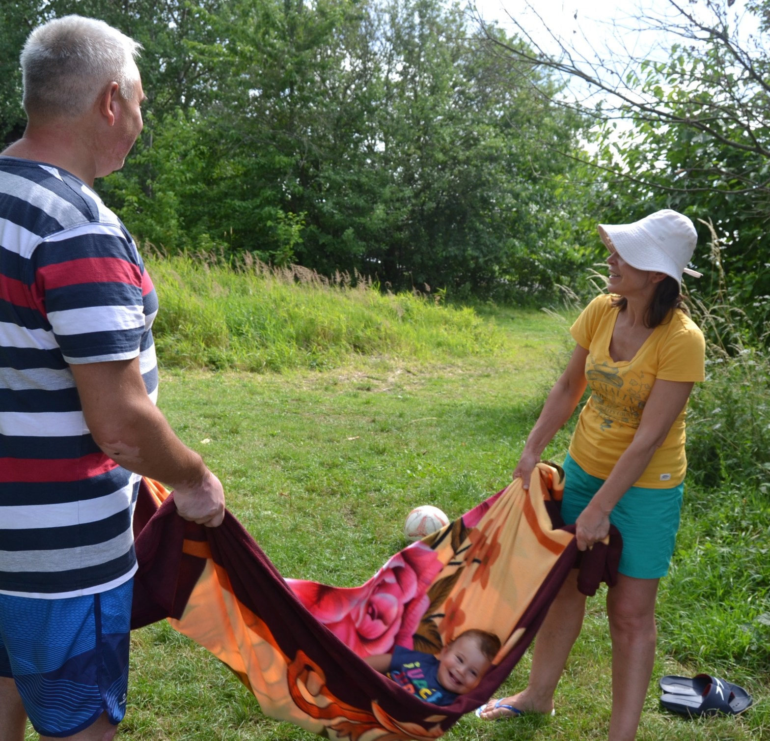 Childhood memories with swings made of carpets